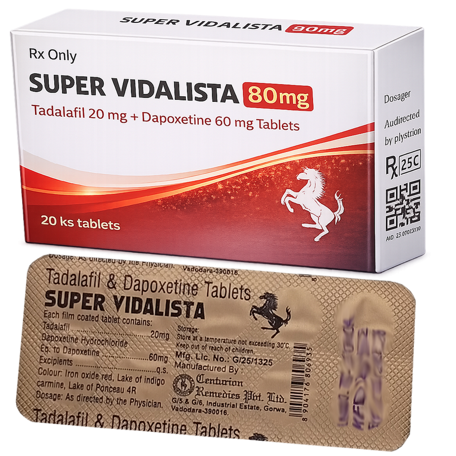 Účinné Látky: Jedna tableta Super Vidalista 80mg obsahuje 20mg Tadalafil a 60mg Dapoxetine.