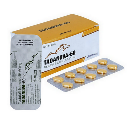Tadanova 60mg (Tadalafil) je vyrábaný spoločnosťou Mednova Pharmaceuticals a je to najobľúbenejší náhrada (generikum) Cialisu (Tadalafil). Tadarise je liek pre mužov ktorí trpia poruchami erekcie alebo ak erektilnou dysfunkciou a po jej užití je možné prakticky každému mužovi dosiahnuť kvalitné erekcie a teda si užiť lepší sexuálny styk.Tadarise (Tadalafil) môže účinkovať až 36 hodín, to je oveľa dlhšie, než Viagra (Sildenafil) alebo ostatné prípravky obsahujúce látku Sildenafil citrate. Z tohto dôvodu je často nazývaný „víkendové tableta“. Vďaka dlhotrvajúcemu účinku sa Tadanova (Tadalafil) stal najviac predpisovaným liekom na liečbu erektilnej dysfunkcie. Tadanova obsahuje látku Tadalafil, ktorá stimuluje prekrvenie penisu čím pri sexuálnej stimulácii dochádza k lepšej a pevnejšie erekciu. Tadanova (Tadalafil) tiež pomáha udržať kvalitnú dlhotrvajúcu erekciu. Tadanova (Tadalafil) účinkuje už cca po 30 minútach od užitia a jeho účinok trvá až 36 hodín. Tadanova (Tadalafil) sa stal v posledných rokoch takmer najobľúbenejším liekom na poruchy erekcie.
