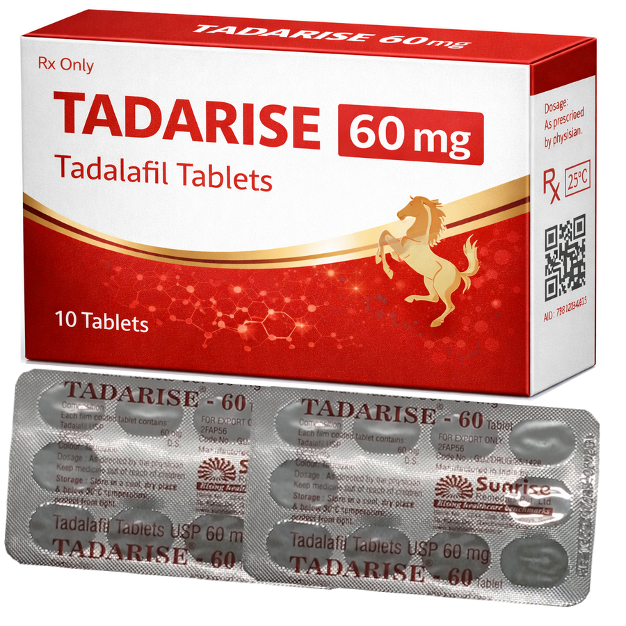 Tadarise 60mg (Tadalafil) je vyrábaný spoločnosťou Sunrise a je to najobľúbenejší náhrada (generikum) Cialisu (Tadalafil). Tadarise je liek pre mužov ktorí trpia poruchami erekcie alebo ak erektilnou dysfunkciou a po jej užití je možné prakticky každému mužovi dosiahnuť kvalitné erekcie a teda si užiť lepší sexuálny styk.Tadarise (Tadalafil) môže účinkovať až 36 hodín, to je oveľa dlhšie, než Viagra (Sildenafil) alebo ostatné prípravky obsahujúce látku Sildenafil citrate. Z tohto dôvodu je často nazývaný “víkendové tableta”. Vďaka dlhotrvajúcemu účinku sa Tadarise (Tadalafil) stal najviac predpisovaným liekom na liečbu erektilnej dysfunkcie. Tadarise obsahuje látku Tadalafil, ktorá stimuluje prekrvenie penisu čím pri sexuálnej stimulácii dochádza k lepšej a pevnejšie erekciu. Tadarise (Tadalafil) tiež pomáha udržať kvalitnú dlhotrvajúcu erekciu.Tadarise (Tadalafil) účinkuje už cca po 30 minútach od užitia a jeho účinok trvá až 36 hodín. Tadarise(Tadalafil) sa stal v posledných rokoch takmer najobľúbenejším liekom na poruchy erekcie.
